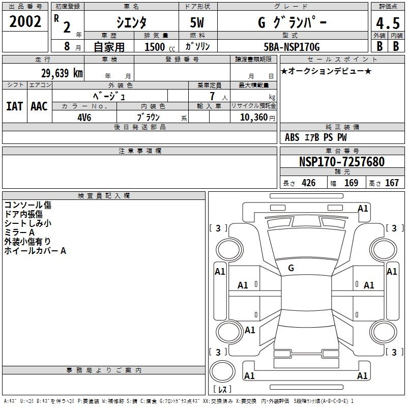 TOYOTA SIENTA G GRAN PA- - лот 2002