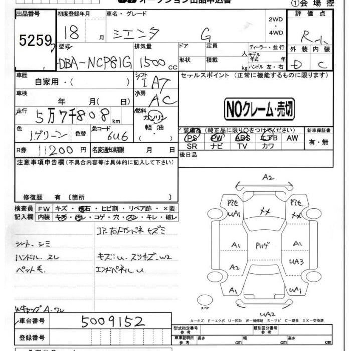 TOYOTA SIENTA G - лот 5259