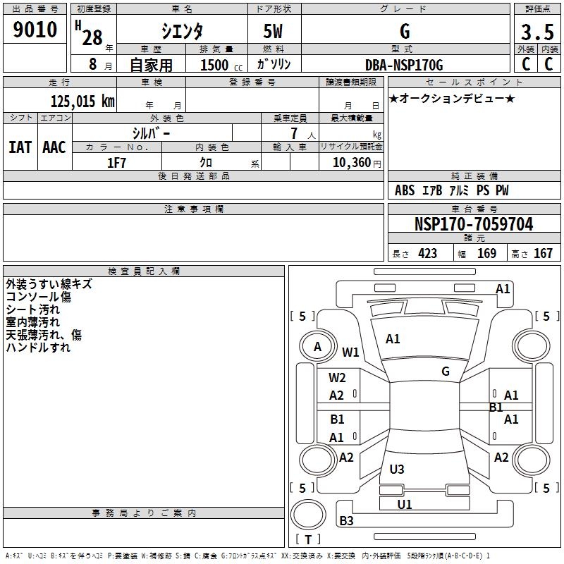 TOYOTA SIENTA G - лот 9010
