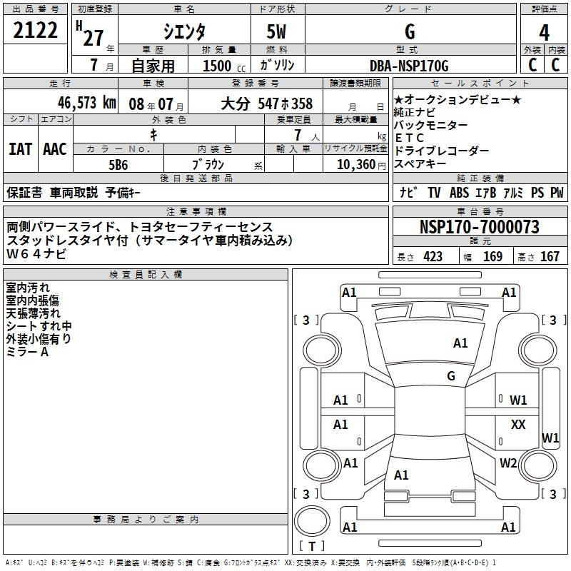 TOYOTA SIENTA G - лот 2122