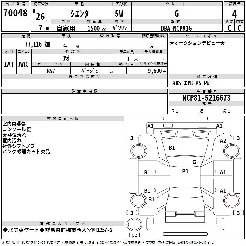 TOYOTA SIENTA G - лот 70048