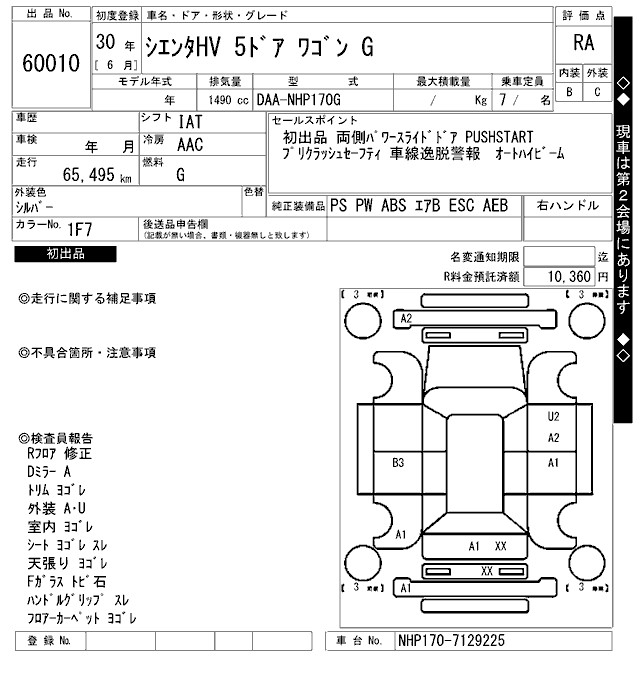TOYOTA SIENTA G - лот 60010