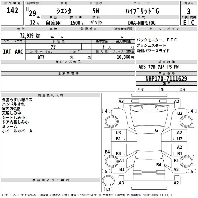 TOYOTA SIENTA HYBRID G - лот 142