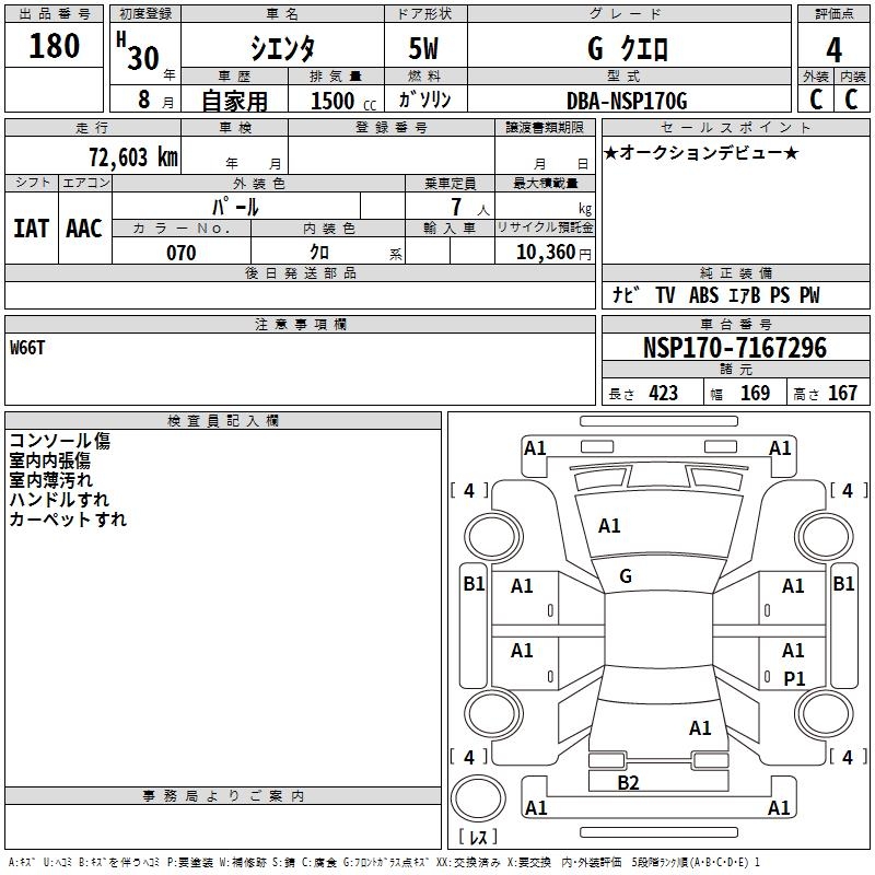 TOYOTA SIENTA GKERO - лот 180