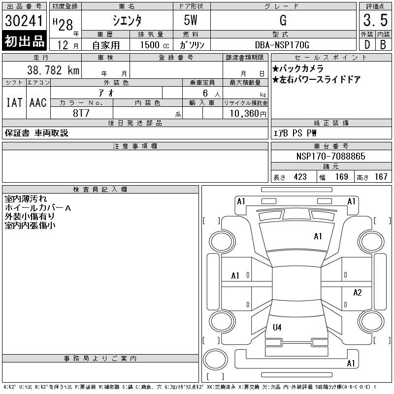 TOYOTA SIENTA G - лот 30241
