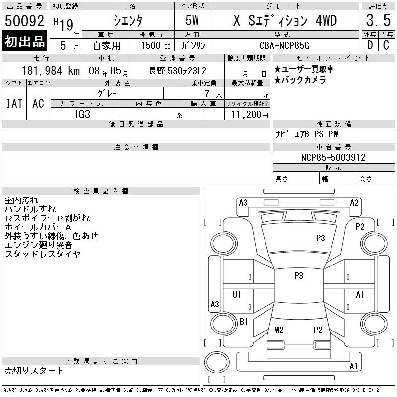 TOYOTA SIENTA X S EDITION 4WD - лот 50092