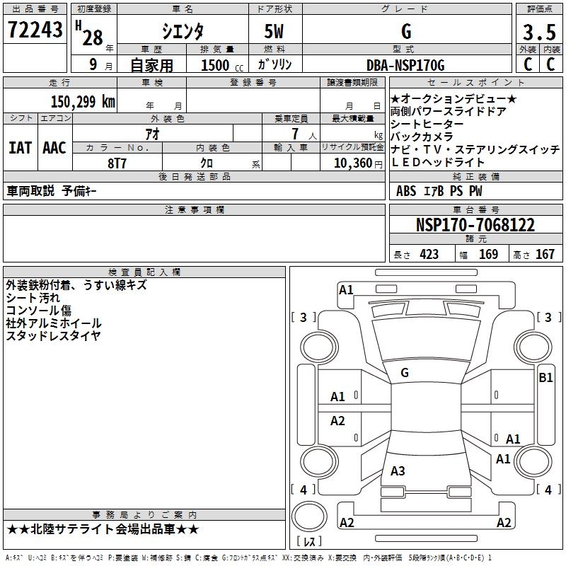 TOYOTA SIENTA G - лот 72243