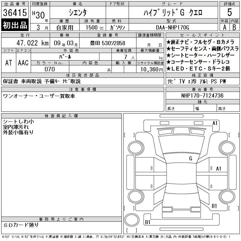 TOYOTA SIENTA HYBRID GKERO - лот 36415