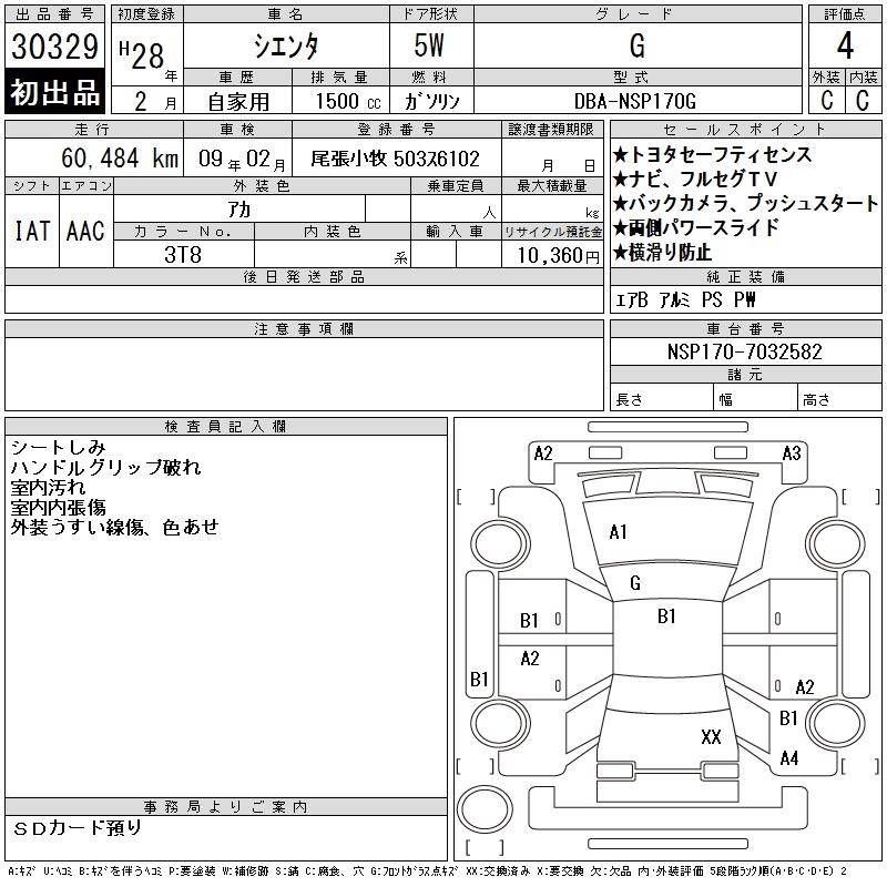 TOYOTA SIENTA G - лот 30329