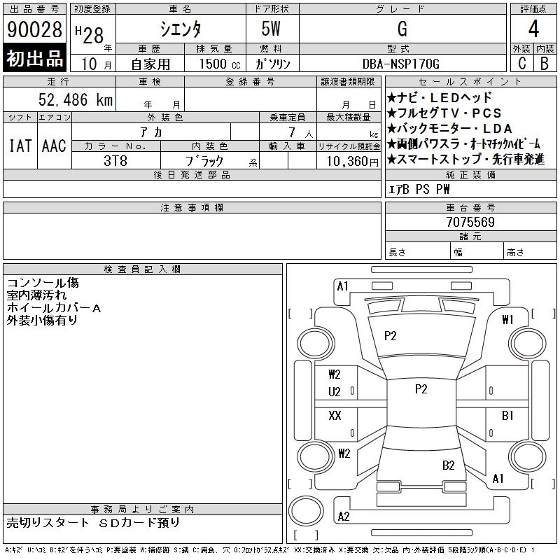 TOYOTA SIENTA G - лот 90028