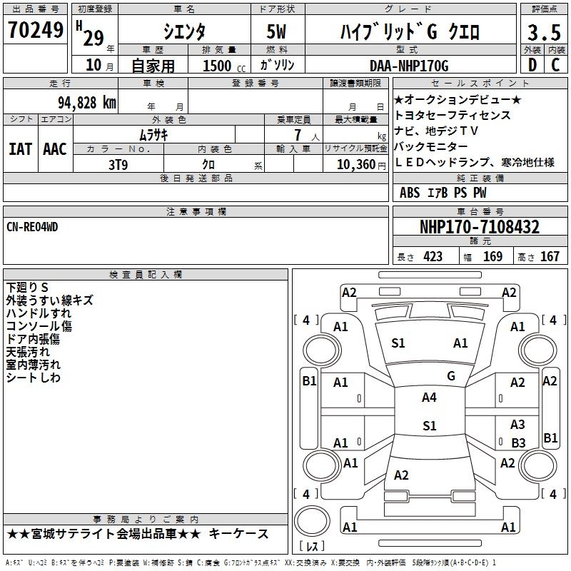 TOYOTA SIENTA HYBRID GKERO - лот 70249