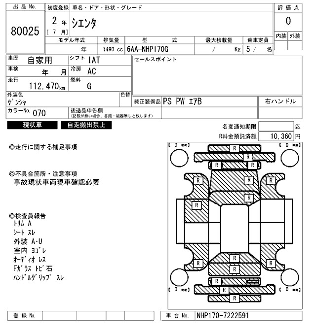 TOYOTA SIENTA - лот 80025