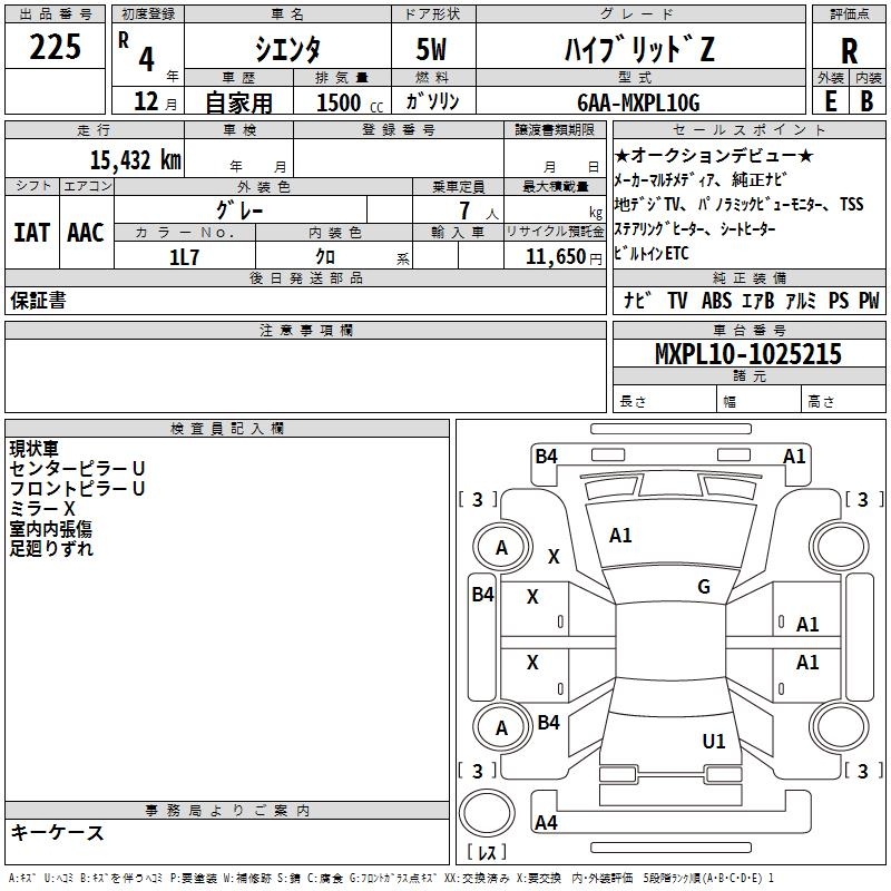 TOYOTA SIENTA HYBRID Z - лот 225