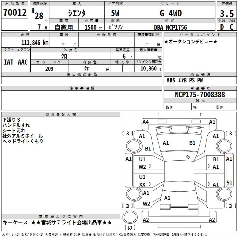 TOYOTA SIENTA G 4WD - лот 70012
