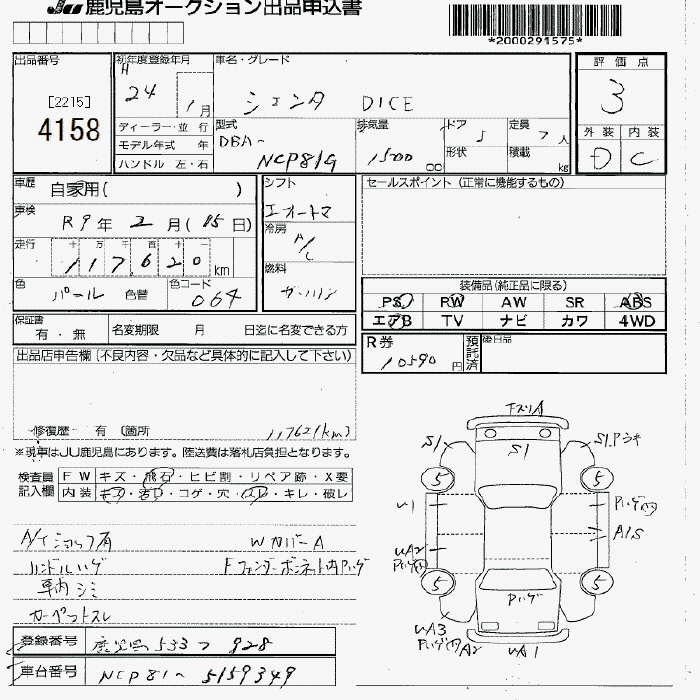 TOYOTA SIENTA DICE - лот 4158