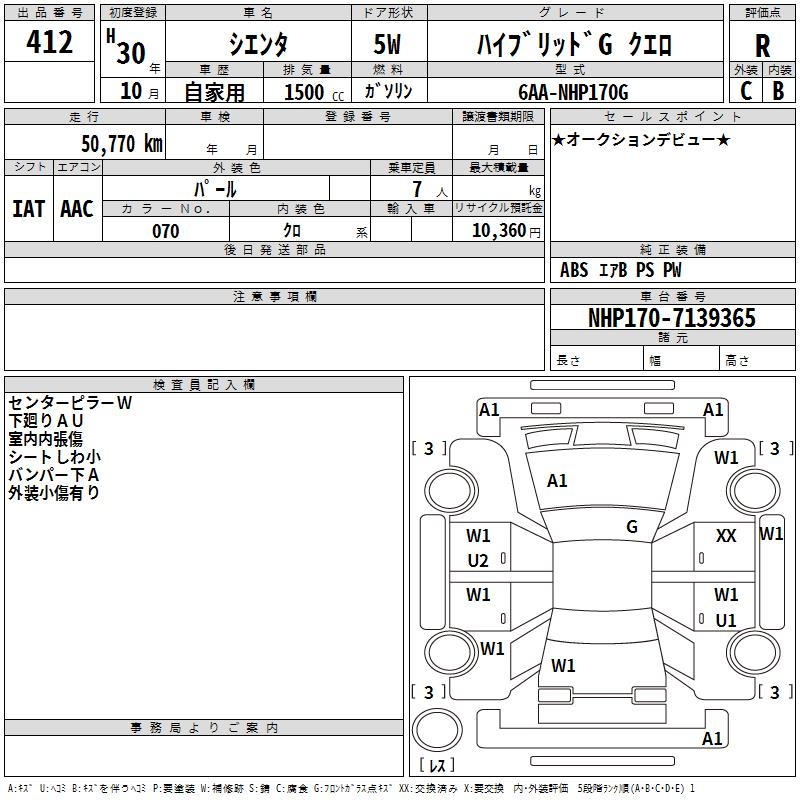 TOYOTA SIENTA HYBRID GKERO - лот 412