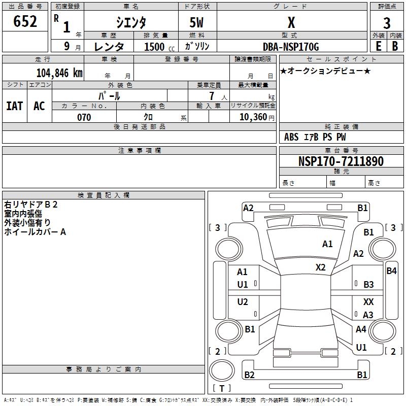 TOYOTA SIENTA X - лот 652