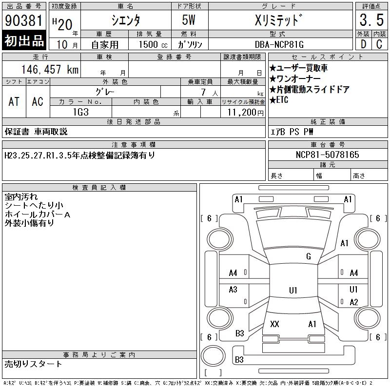 TOYOTA SIENTA X LIMITED - лот 90381