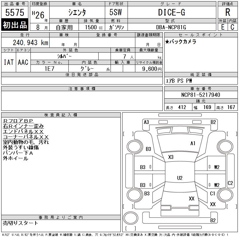 TOYOTA SIENTA DICE-G - лот 5575