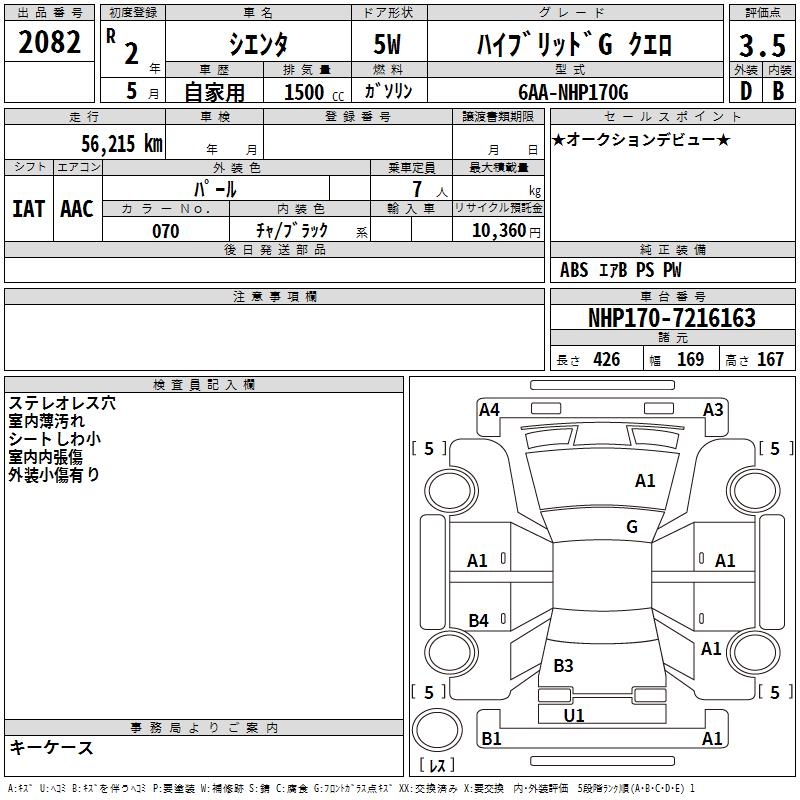 TOYOTA SIENTA HYBRID GKERO - лот 2082