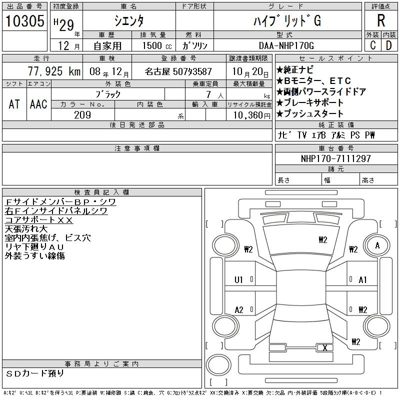 TOYOTA SIENTA HYBRID G - лот 10305