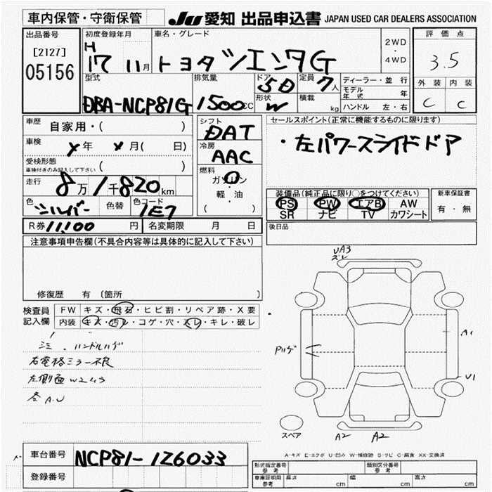 TOYOTA SIENTA G - лот 5156