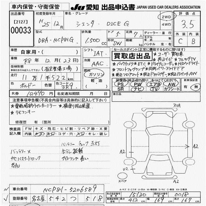 TOYOTA SIENTA DICE G - лот 33