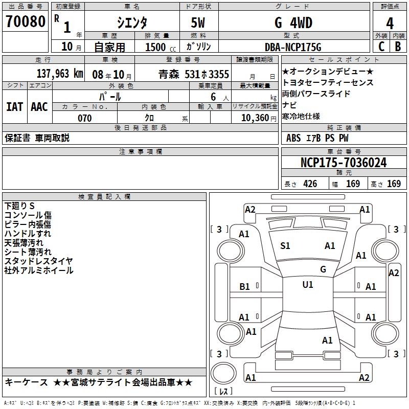 TOYOTA SIENTA G 4WD - лот 70080
