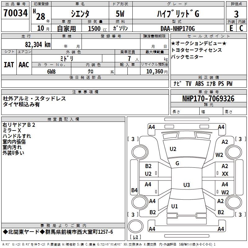 TOYOTA SIENTA HYBRID G - лот 70034
