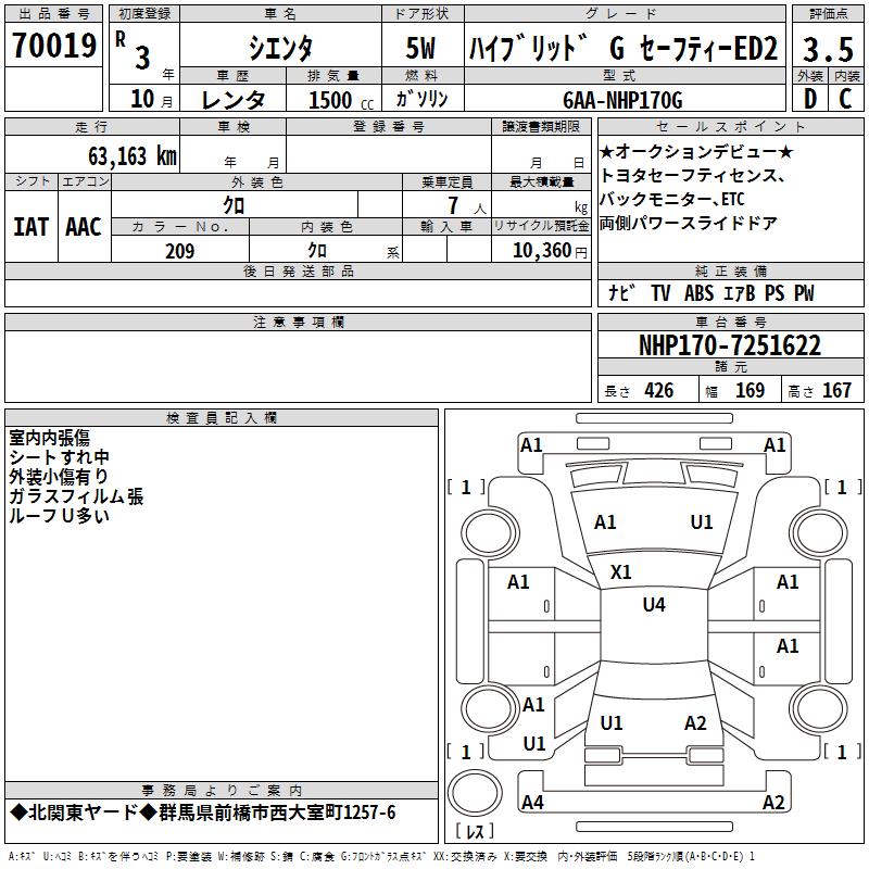 TOYOTA SIENTA HYBRID G SAFETY -ED2 - лот 70019