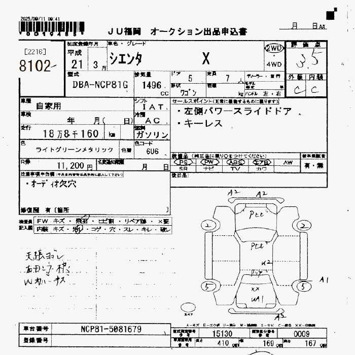 TOYOTA SIENTA X - лот 8102