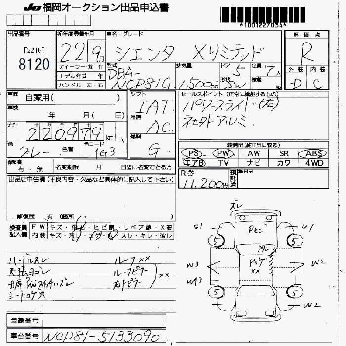 TOYOTA SIENTA X LTD - лот 8120
