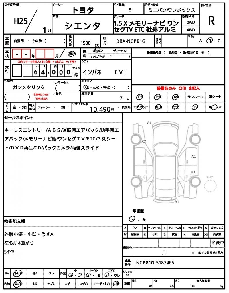 TOYOTA SIENTA - лот 6062