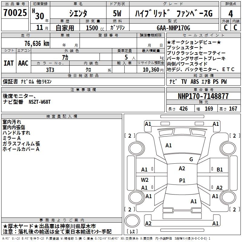 TOYOTA SIENTA HYBRID FAN BASE G - лот 70025