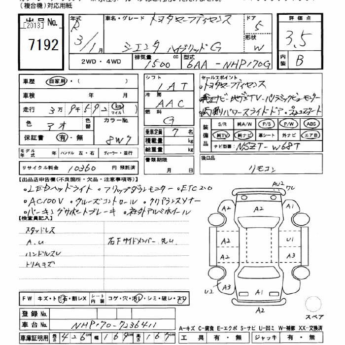 TOYOTA SIENTA HYBRID G TOYOTA SAFETY SENS - лот 7192