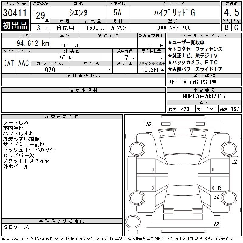 TOYOTA SIENTA HYBRID G - лот 30411
