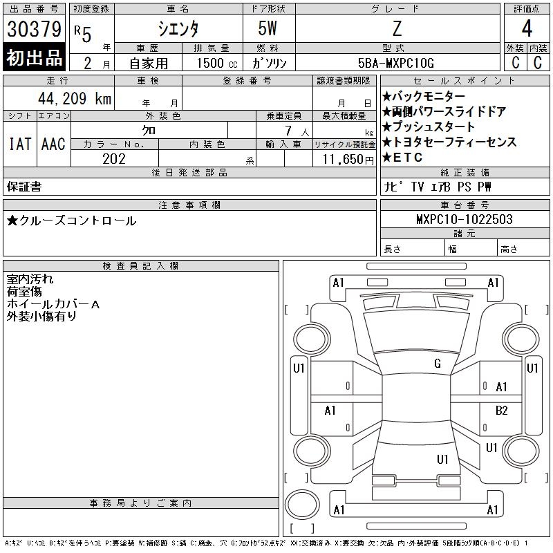 TOYOTA SIENTA Z - лот 30379