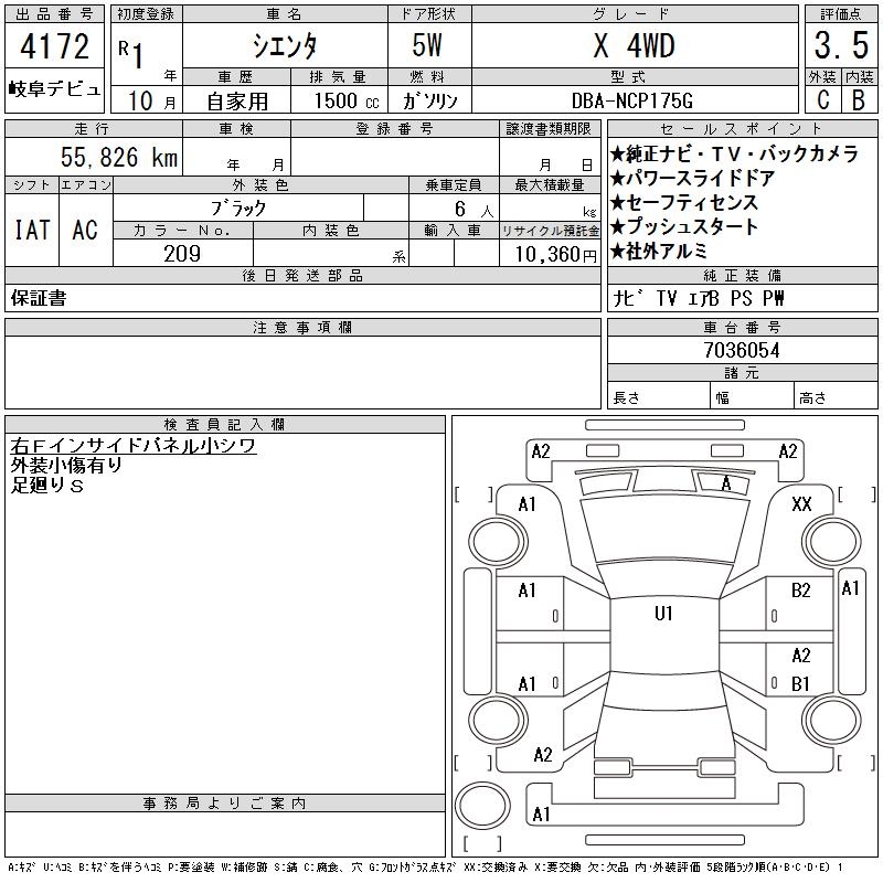 TOYOTA SIENTA X 4WD - лот 4172