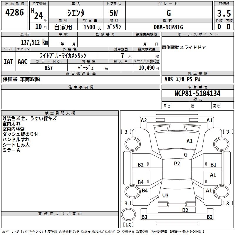 TOYOTA SIENTA G - лот 4286