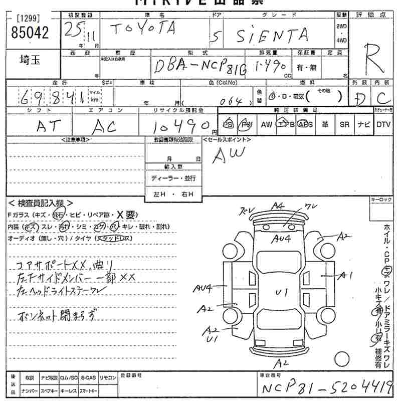 TOYOTA SIENTA - лот 85042