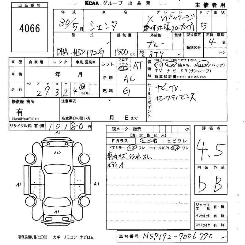 TOYOTA SIENTA - лот 4066