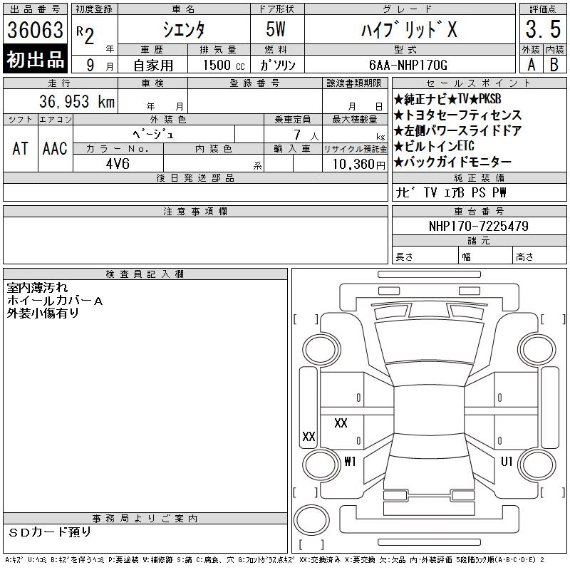 TOYOTA SIENTA HYBRID X - лот 36063
