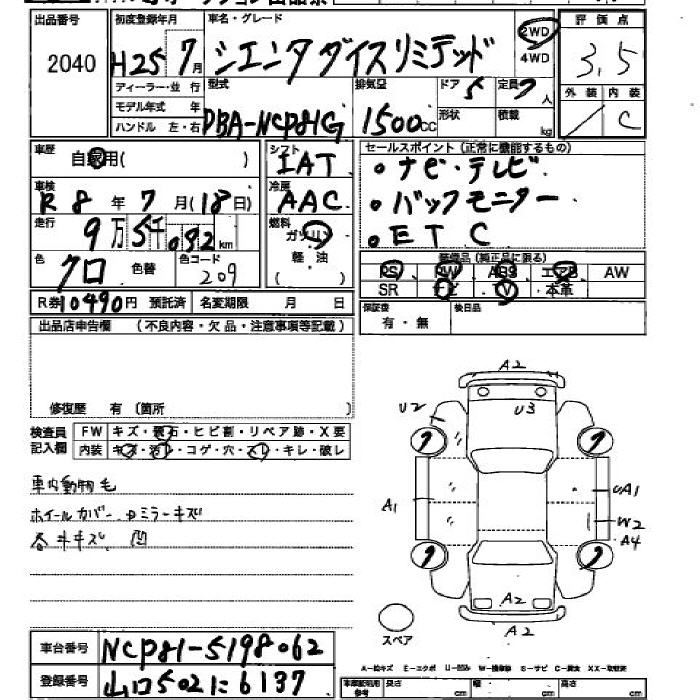 TOYOTA SIENTA DICE LIMITED - лот 2040