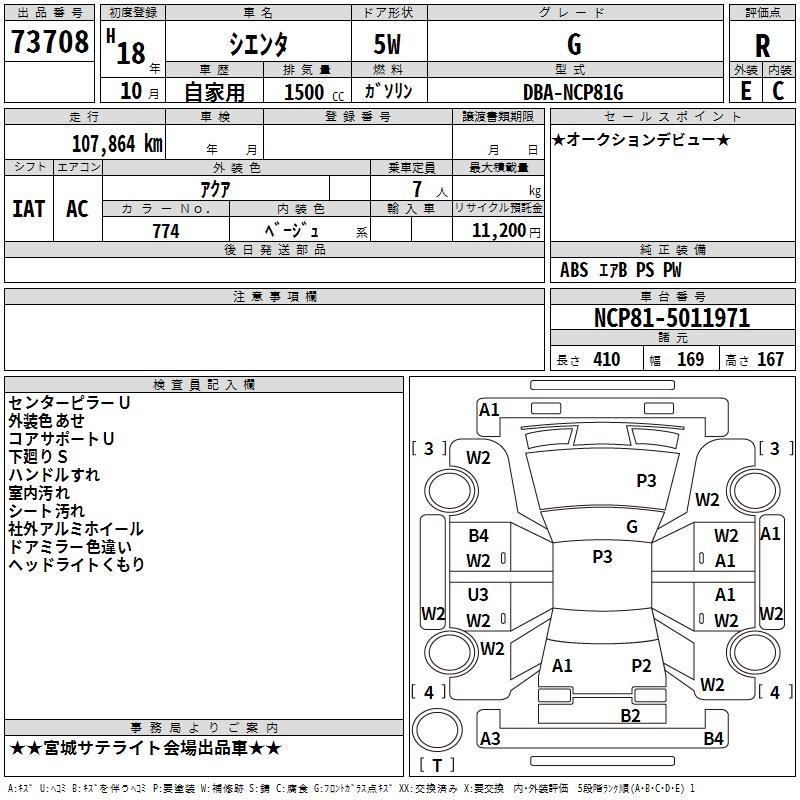 TOYOTA SIENTA G - лот 73708