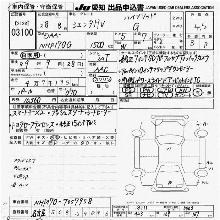 TOYOTA SIENTA HYBRID G - лот 3100