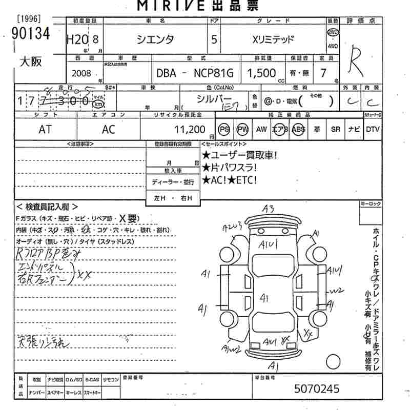 TOYOTA SIENTA X LIMITED - лот 90134