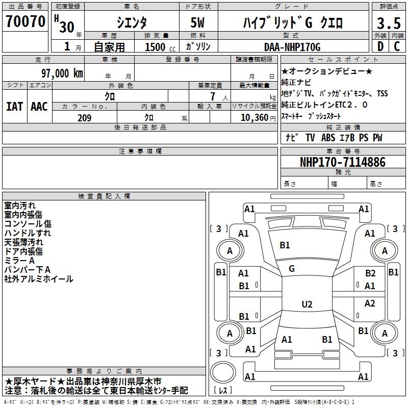 TOYOTA SIENTA HYBRID GKERO - лот 70070