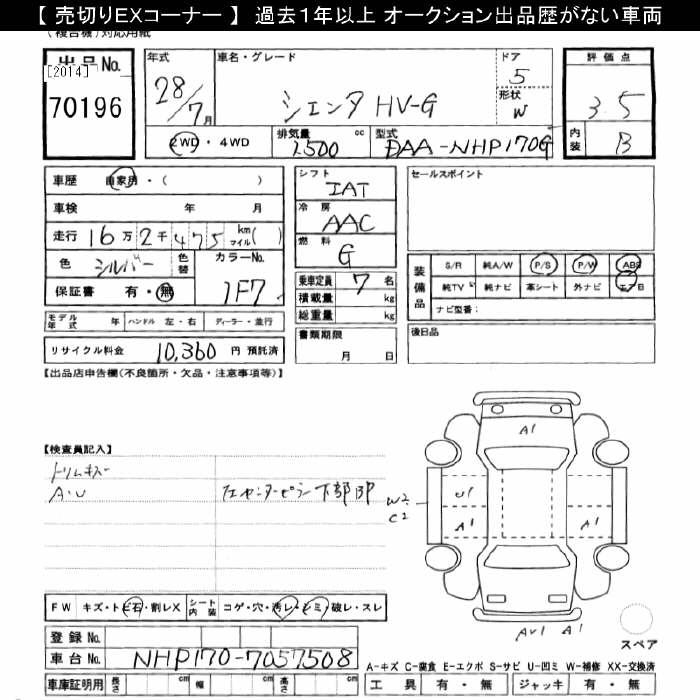 TOYOTA SIENTA HYBRID G - лот 70196
