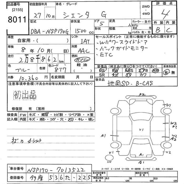 TOYOTA SIENTA G - лот 8011