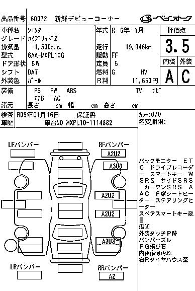 TOYOTA SIENTA HYBRID Z - лот 60072